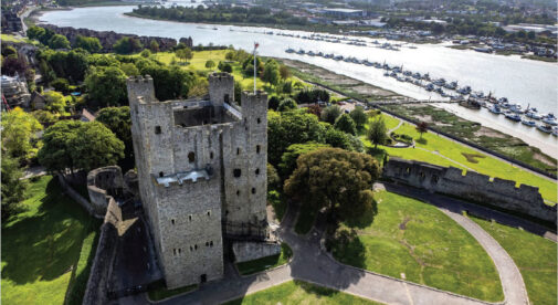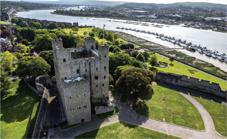 Situated on the banks of the Medway River, just a 40-minute train ride from London, Rochester Castle is one of Britain’s most impressive surviving medieval structures. Standing 125 feet high, it’s the tallest square keep to survive in Europe, and a magnificent example of 11th century Norman architecture.