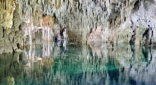 Spotlights showcase underground vaults full of ancient formations and structures. In some places, the stalactites and stalagmites have joined to form colossal columns. In essence, it’s a living museum… so ancient that the Maya say you can hear the spirits of their ancestors.